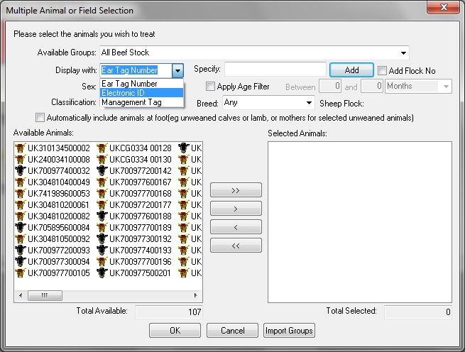 also provides a simple graphic way to select animals - the 'Multiple Animal