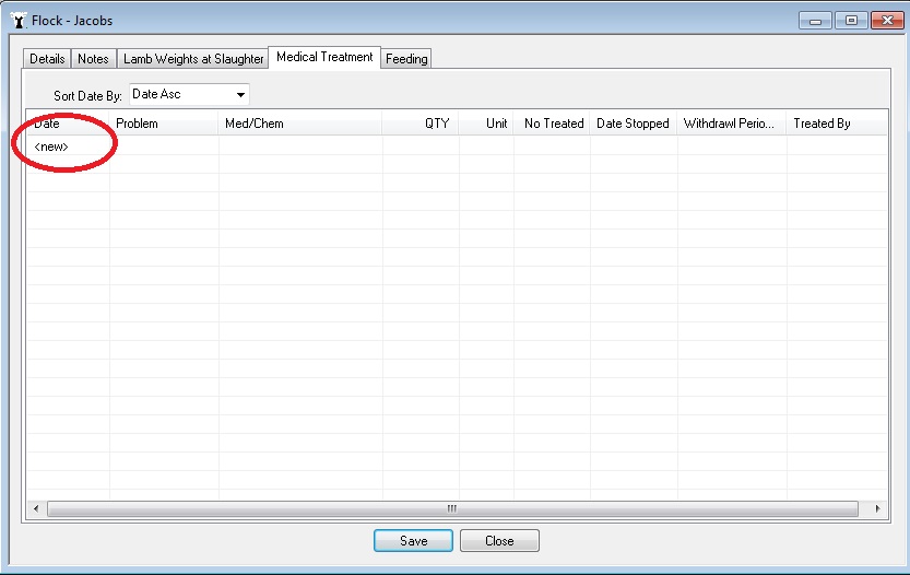You may record treatments without specifing individual tag numbers using the flock record. This is useful for untagged lambs or bulk preventative treatments where the individual tag number is not important.